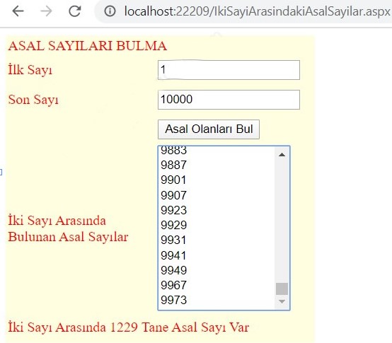 Asp Net Iki Sayi Arasindaki Asal Sayilari Bulma Tasarim Kodlama