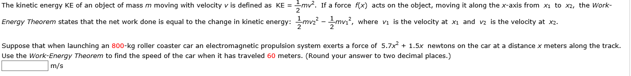 Solved The Equation For Kinetic Energy Is Ke 1 2 Mv 2 Wh Chegg Com