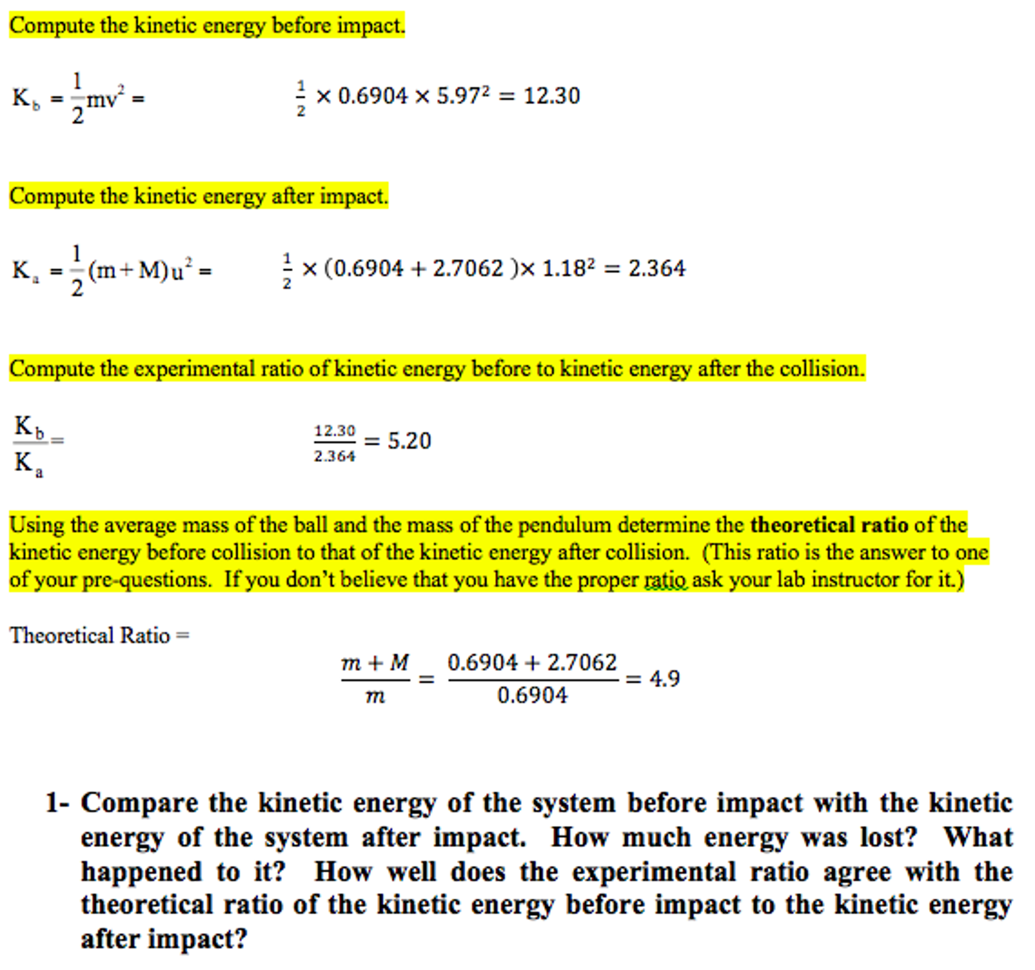 Solved Compute The Kinetic Energy1 Before Impact K B 1 Chegg Com