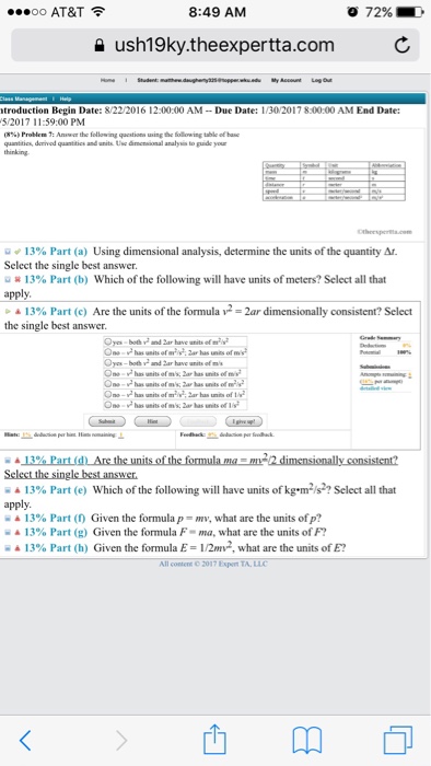 Solved 3 Part D Are The Units Of The Formula Ma Mv2 Chegg Com