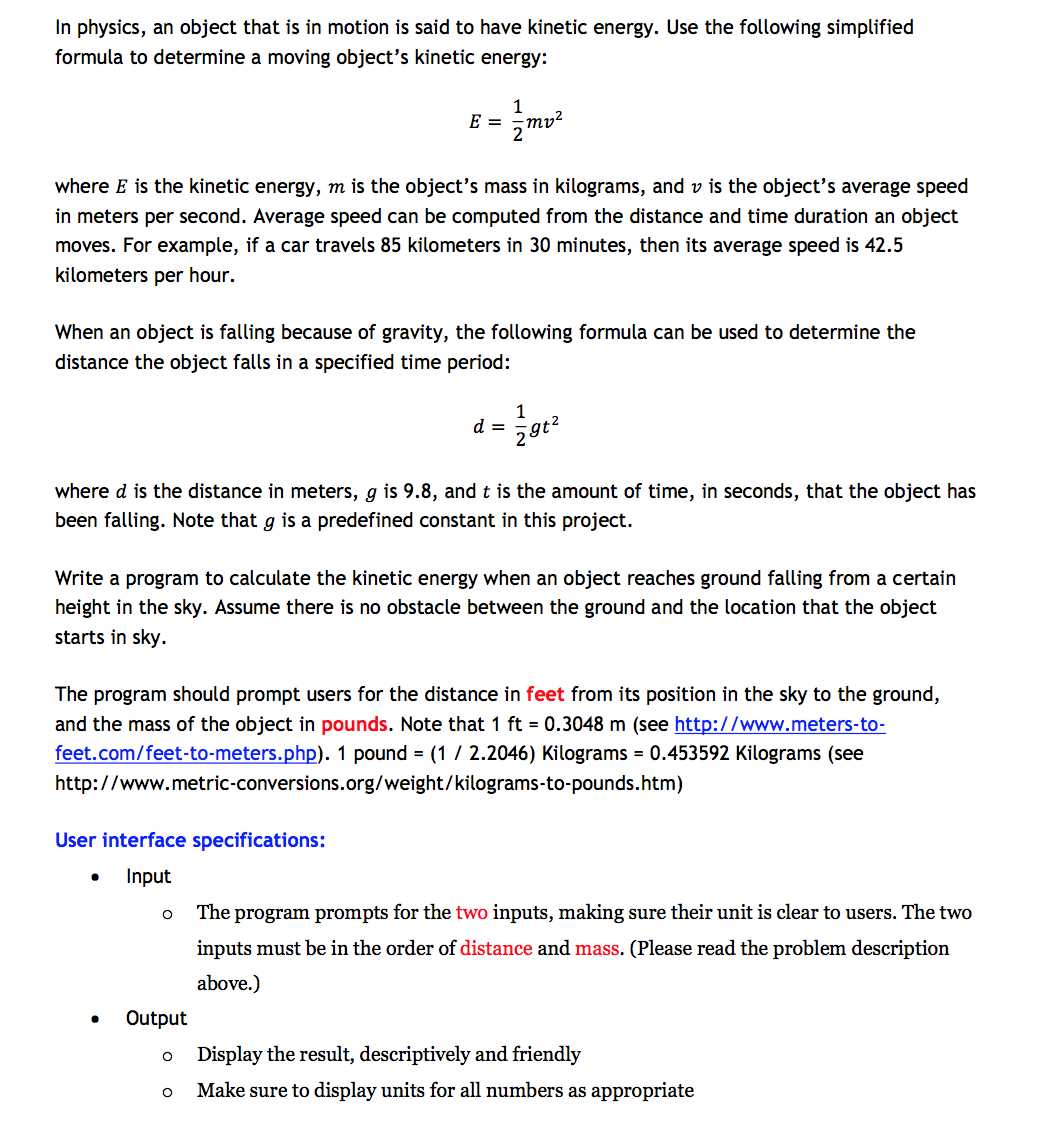 Solved The Equation For Kinetic Energy Is Ke 1 2 Mv 2 Wh Chegg Com