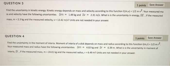 Solved Kinetic Energy Ek Is Given By The Formula Ek 1 Chegg Com
